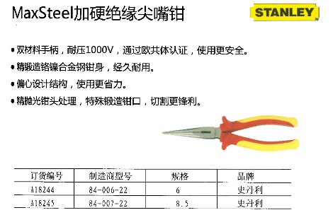 加硬绝缘尖嘴钳