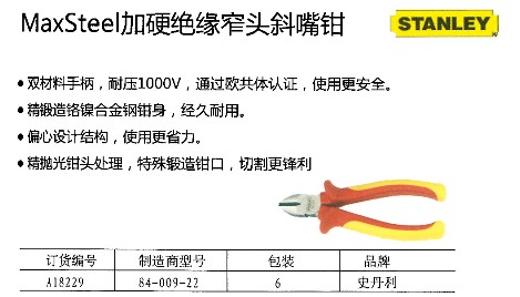 加硬绝缘窄头斜嘴钳