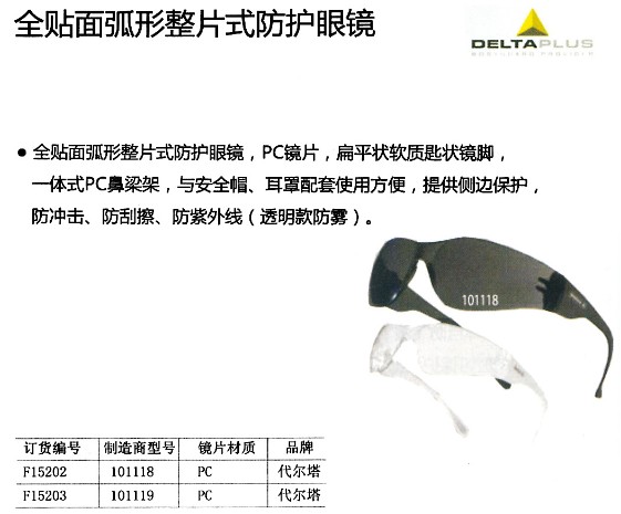 全贴面弧形整片式防护眼镜
