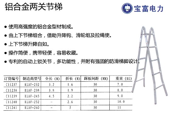 铝合金两关节梯