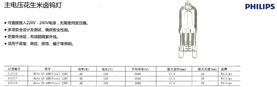 主电压花生米卤钨灯