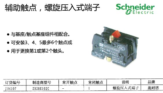 辅助触点 螺旋压入式端子
