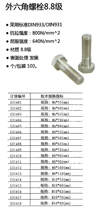 外六角螺栓8.8级