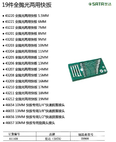 19件全抛光两用快扳