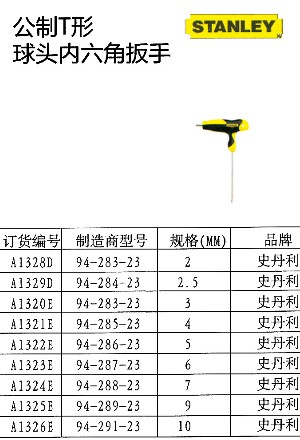 公制T形球头内六角扳手