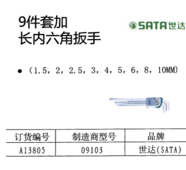 9件套加长内六角扳手
