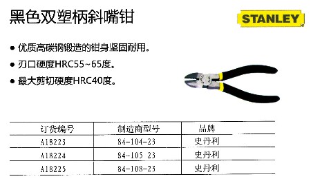 黑色双塑柄斜嘴钳