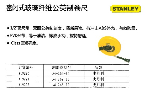 密闭式玻璃纤维公英制卷尺